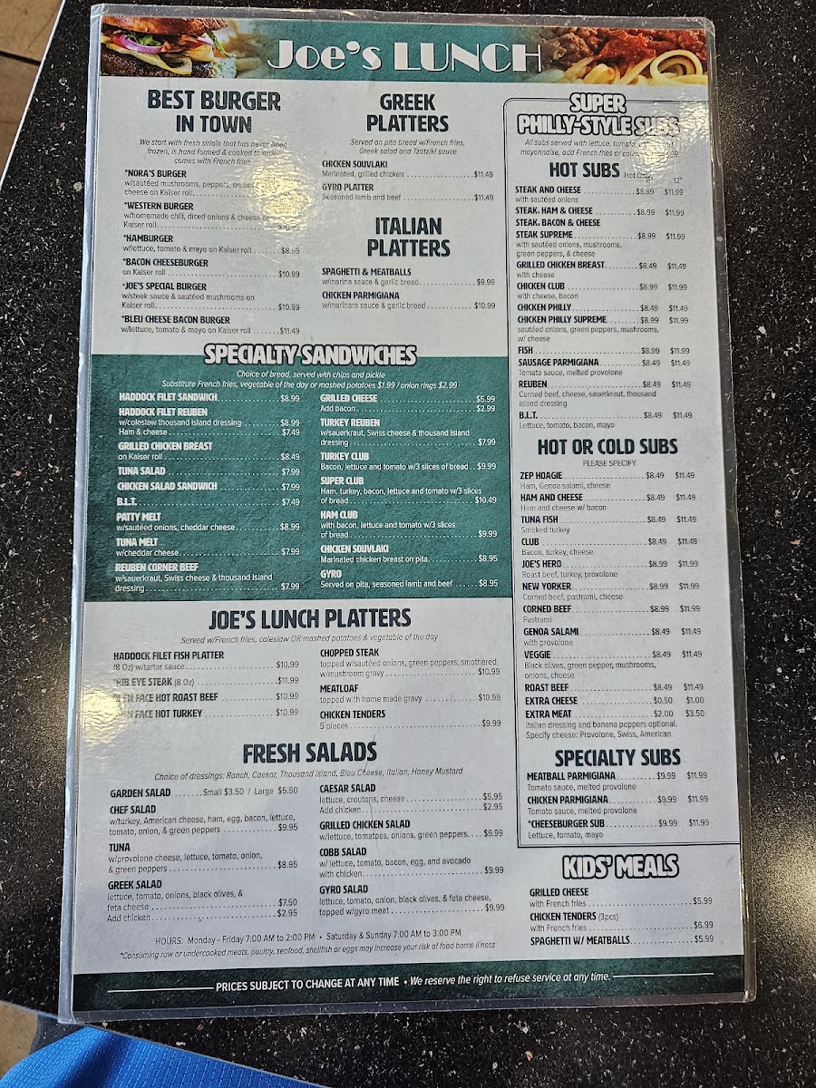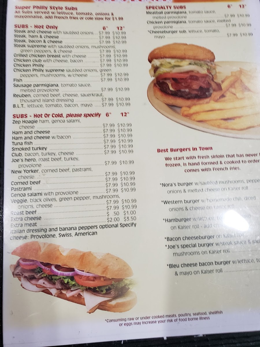 Welcome to Joe's Cafe, a charming diner located at 45665 W Church Rd, Sterling, VA. Known for its warm atmosphere and friendly service, Joe’s Cafe is a culinary gem where comfort food meets excellent hospitality. The highlight of the menu is undoubtedly the burgers, featuring Nora's Burger with sautéed mushrooms and melted cheese, and the indulgent Bacon Cheeseburger. For those seeking lighter options, the salads are equally enticing, with choices like the Chef Salad loaded with turkey and ham or the refreshing Greek Salad.