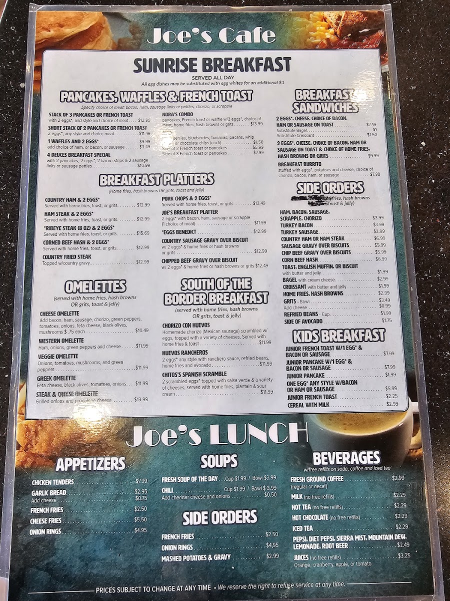 Customers rave about the delicious breakfast offerings, from perfectly cooked eggs to satisfying French toast, all served up with a side of genuine care from the staff. Whether you’re enjoying a quiet meal or catching up with friends, Joe's Cafe promises a delightful experience every time. With reasonable prices and generous portions, you might just find yourself coming back for more!